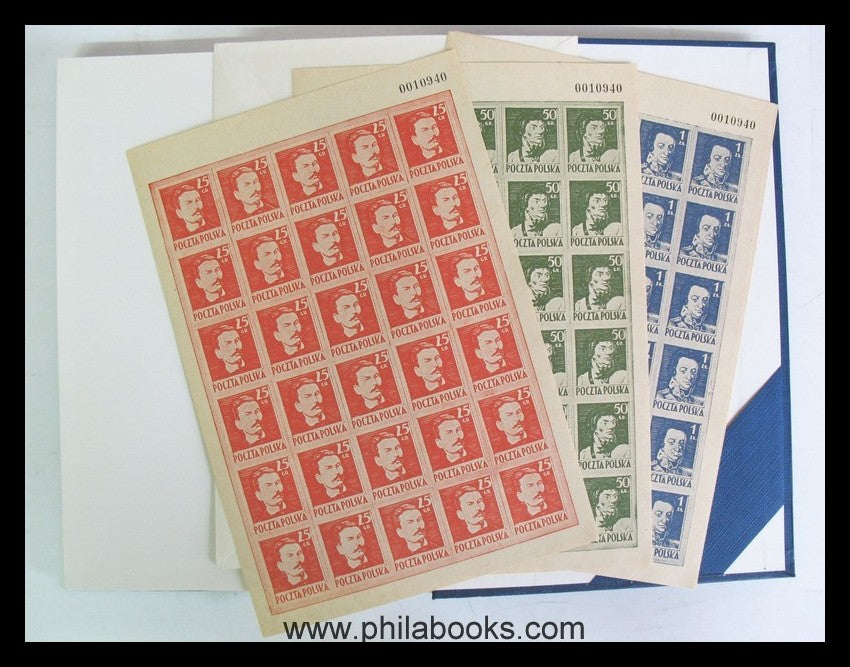 Danowski/Fijas/Koscielniak/Piatak/Piekut/Zolkiewski: Poczta Polska w 1944 Roku, 1981, Hdb. über die Anfänge der polnischen Post nach der Befreiung Polens 1944 und die ersten Briefmarkenausgabe, auch Stpl., Belege, etc., 302 S., zahlr. Abb., teils farbig. Komplett mit 4 Nachdruckbogen der Ausgabe 1944. Gut erhalten mit nur leichten Gebrauchsspuren, die Nachdruckbogen tadellos. #49037