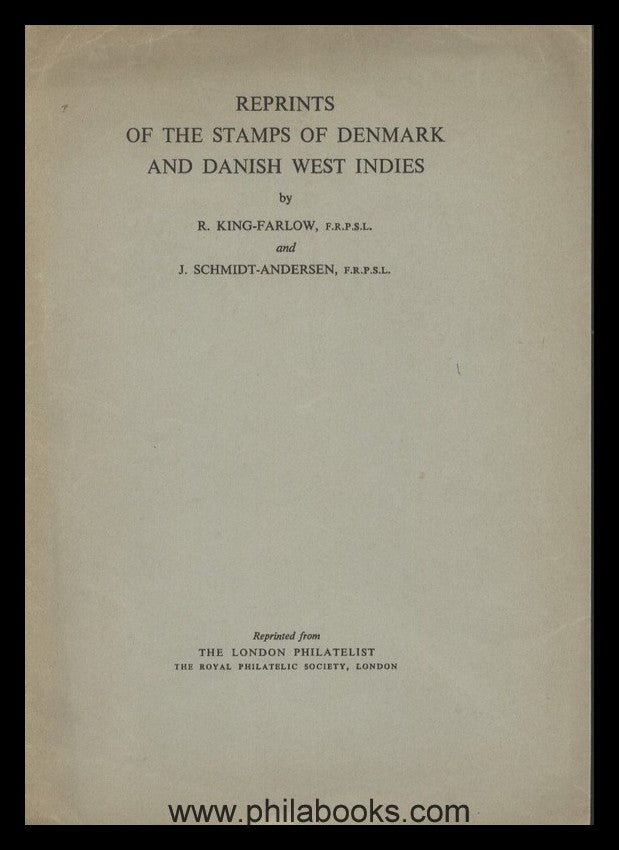 King-Farlow/Schmidt-Anderson: Reprints of the Stamps of Denmark and Danish West Indies. Reprinted from The London Philatelist, 1950, 7 S., mit 2 Tafeln, kleine Mängel #49053