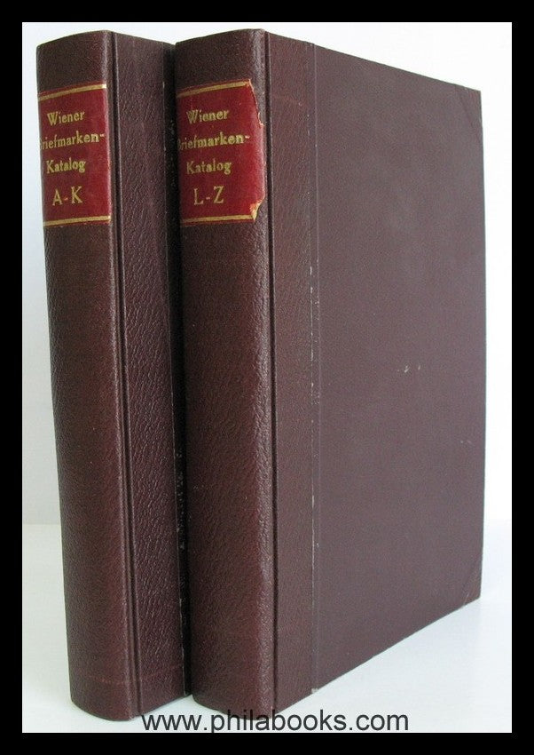 Strauß, E. / Krammer, R. (Hrsg.): Wiener Briefmarken-Katalog, Österreichischer Gewerbeverlag, Wien, Juni 1946, wohl erster österreichischer Katalog für Gesamt-Europa mit Österreich nach dem Krieg, schöner Katalog in 2 Bden, Einbd. geringe Gebrauchsspuren. Dunklelbraune Leineneinbände mit 2-farbigen Rückenschildern, Buchecken, allseitiger Farbschnitt, der Druck erfolgte wie für die frühen Nachkriegspublikationen typisch, wegen Papiermangel auf verschiedenerlei Papier. Zeitdokument! #49756