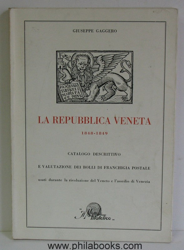 Gaggero, G.: La Repubblica Veneta 1848-1849. Catalogo descrittivo e valutazione die bolli di ffanchigia postale usati durante la rivoluzione del Veneto e l'assedio di Venezia, 1971, Hdb. u. Kat. der Stempel der Republik Venedig 1848-1849, mit Bewert. in Pkten, 210 S., mit Abb., leichte Alters-und Gebrauchsspuren, feste Bindung #49981