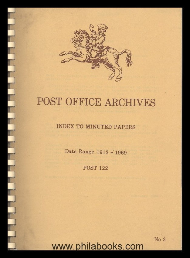 Post Office Archives, Index to Minuted Papers, Date Range 1913-1969, Post 122, No. 3, 1988, 48 S, Archiv-Verzeichnis #50567