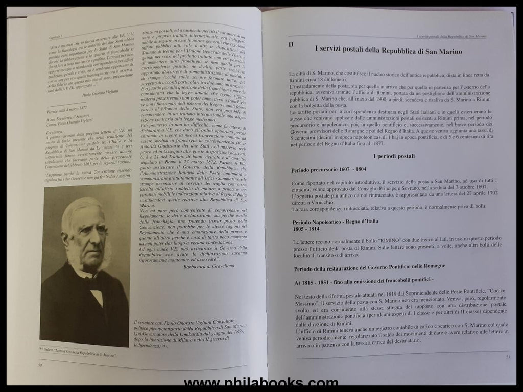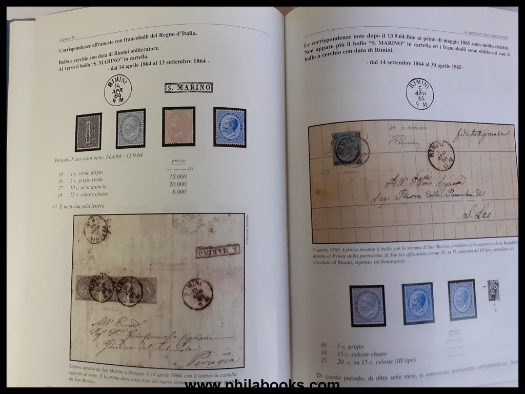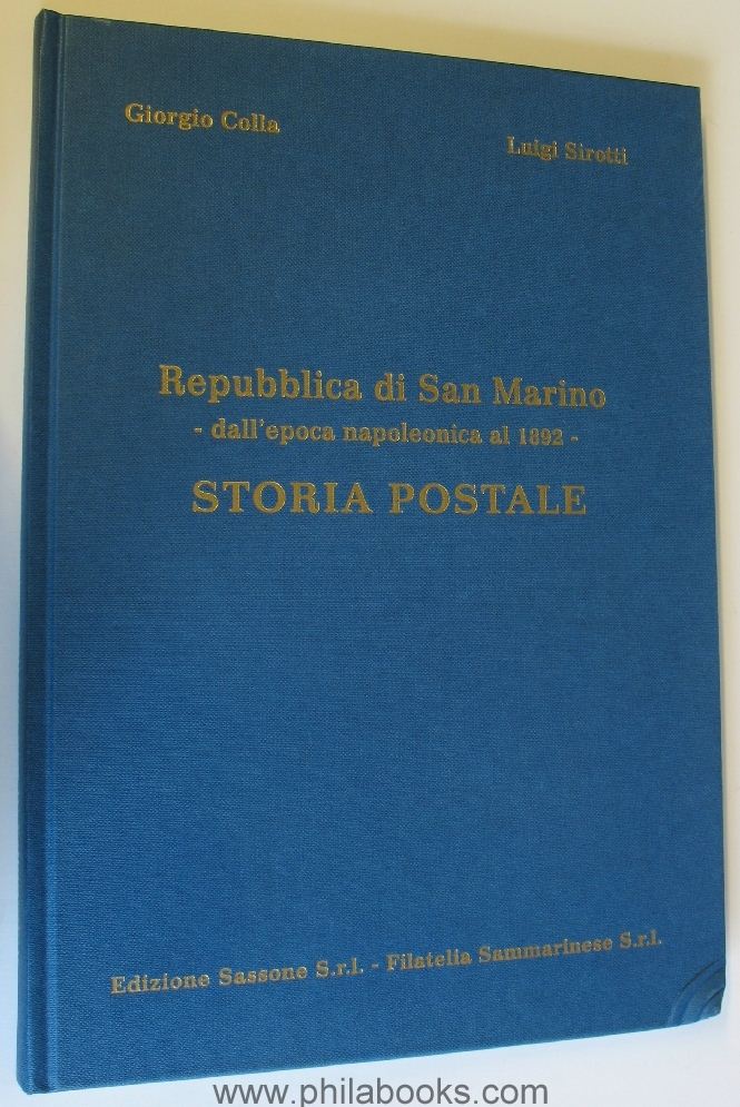 Colla/Sirotti: Repubblica di San Marino, dall'epoca napoleonica al 1892 storia postale, 2001, Katalog und Handbuch der Marken, Stempel-und Postgeschichte ab napoleonischer Zeit bis 1892 mit 280 farbigen Abbildungen, dabei viele Belege, die beschrieben sind, vorallem der Vorläufer mit italienischen Frankaturen, 172 S., kpl. mit Kartenbeigabe, druckfrisch, Einbandecken transportbedingt leicht bestoßen. #50697