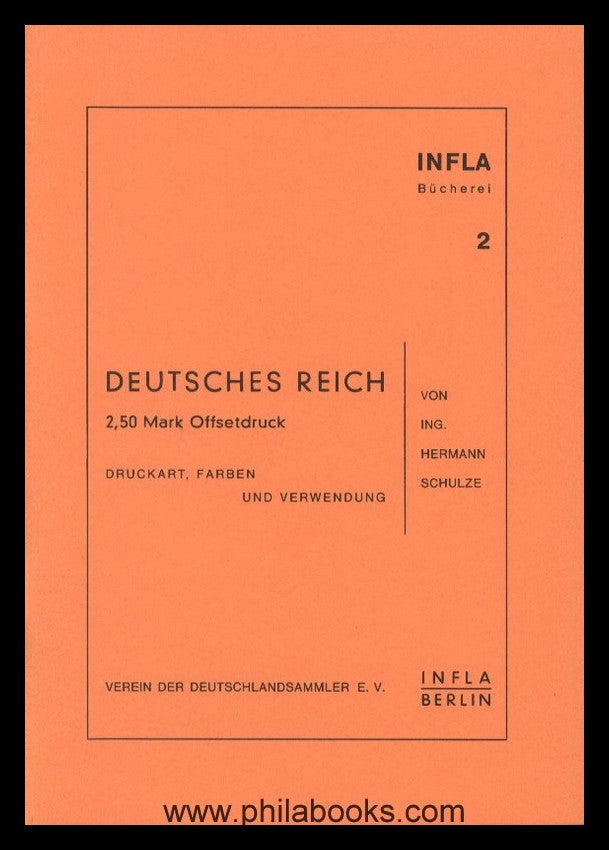 Schulze, Ing. Hermann: Deutsches Reich, 2,50 Mark Offsetdruck, Druckart, Farben und Verwendung, INFLA Bücherei 2, 1958, hier die Originalausgabe keine der späteren Nachdrucke, Papier gebräunt, sonst gut, 15 S. #50709