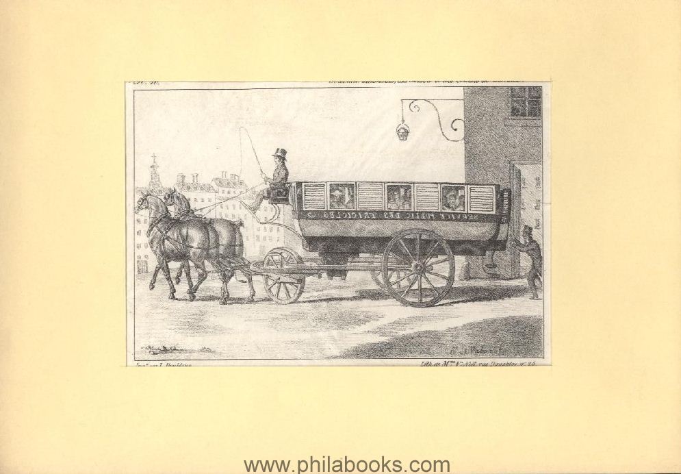 POSTKUTSCHE FRANKREICH, 1830 (um), 'Service Public Tricicles', Pariser Omnibus-Kutsche, bespannter 3-rädriger Stadtwagen, Lithographie 12x18 cm, unter Passepartout #51254