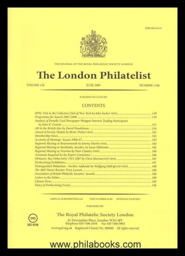 Handelman, David: AR in the British Isles, Beitrag in The London Philatelist, Vol.116, Nr.1346, June 2007, 26-seitiger Beitrag über Einschreiben mit Rückschein in Großbritannien, auch kleiner Teil 'international', viele farbige Abb. #52015