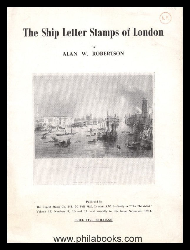 Robertson, Alan W.: The Ship Letter Stamps of London, Published by The Regent Stamp Co., London, firstly in 'The Philatelist' Volume 17, Numbers 9, 10 and 11, secondly in this form, November 1951, 11 S., mit Abb. und Seltenheitsangaben der Stempel. #52516