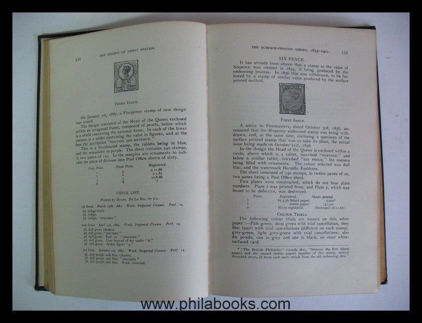 Oliver, Sidney A.R./ Vallancey, F.Hugh, The Postage Stamps of Great Britain, 1840-1922, 1923, Hardcover, 563 S., Abb., hier ein besonderes Exemplar mit folgender Vorbemerkung auf dem Vorblatt ' Capt. Fletcher, The whole remaining stock of this book was destroyed by enemy action 11th May 1941', signiert Vallancey, leichte Alters-und Gebrauchsspuren, feste Bindung. #53618