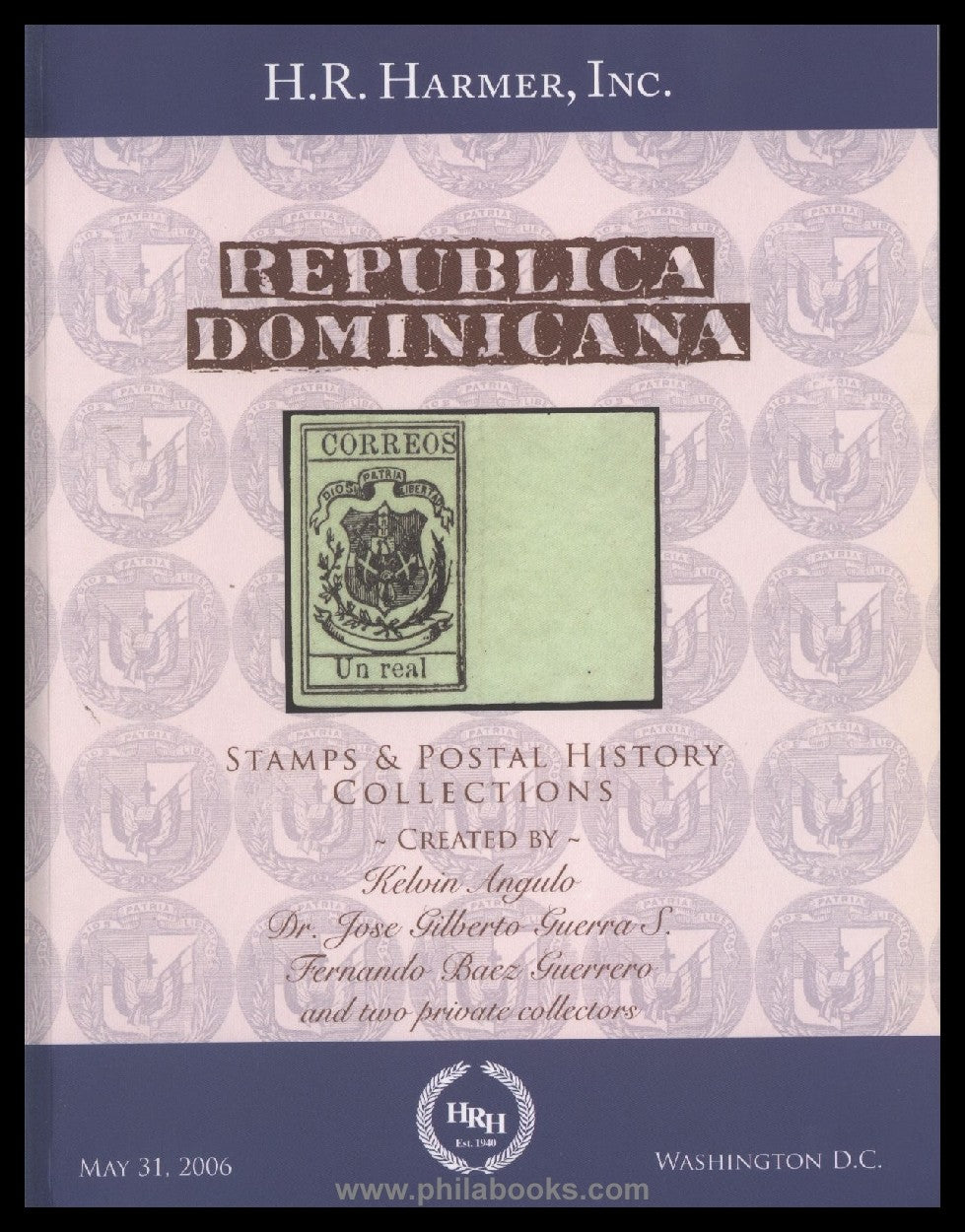 Harmer, H.R., Republica Dominicana, Stamps & Postal History Collections, Created by Kelvin Angula, Dr. Jose Gilberto Guerra S., Fernando Baez Guerrero and two private collectors, Washington, 31.05.2006, 53 S., 168 L., zahlr. Abb., Farbe, mit EL #53838