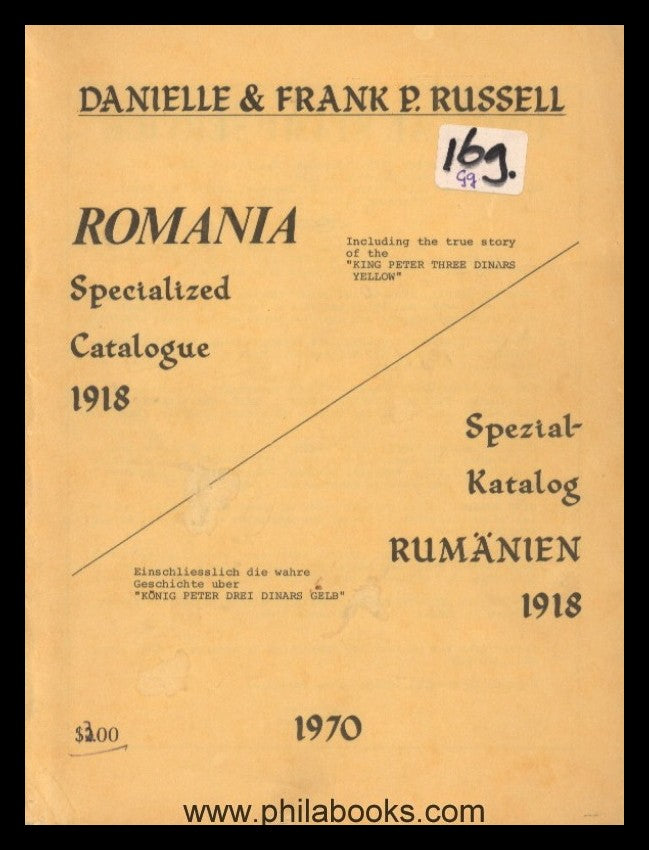 Russell, Frank P./ Russell, Danielle, Spezialkatalog Rumänien 1918/ Romania Specialized Catalogue 1918, including the true story of the 'King Peter Three Dinars Yellow', 1970, 128 S., mit Abb., Text engl. und deutsch, Vorderumschlag Gebrauchsspuren, sonst gut erhalten #54031