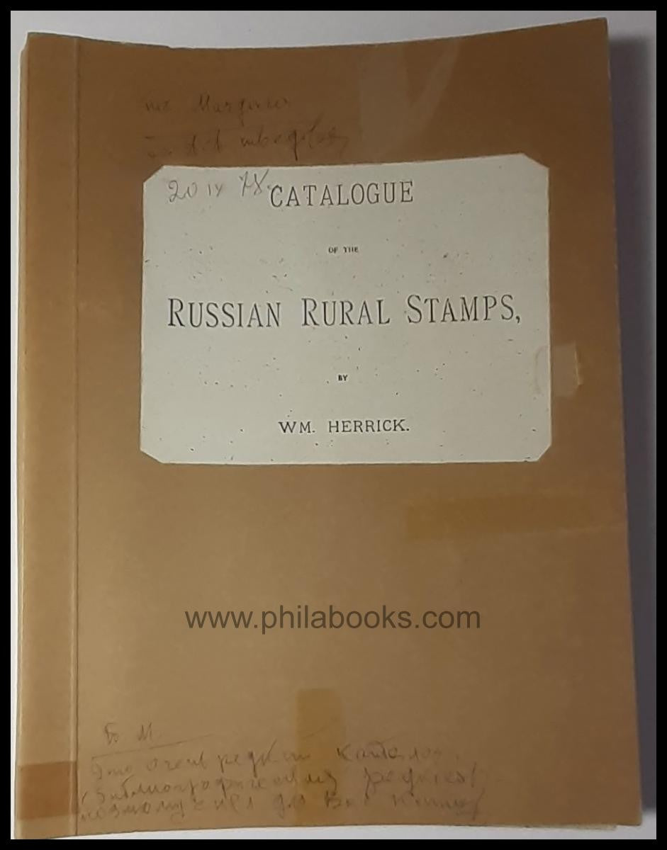Herrick, WM., Catalogue of the Russian Rural Stamps, 1896, 127 S., einfache aber gut lesbare KOPIE aus ca Mitte der 1970er Jahre, Abb. ebenfalls gut erkennbar, im Schnellhefter , beschriftet mit 'Morgoulis', dem bekannten Raritätenhändler Paul Morgoulis #54097