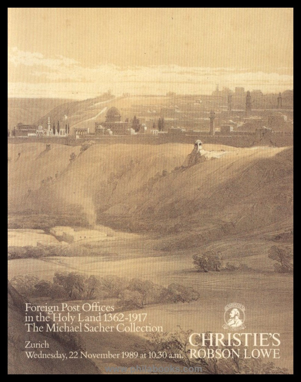 Christie's, Foreign Post Offices in the Holy Land 1362-1917, The Michael Sacher Collection, Zurich, 22.11.1989, 116 S., mit zahlr. Abb., wichtiger Referenzkatalog #54118