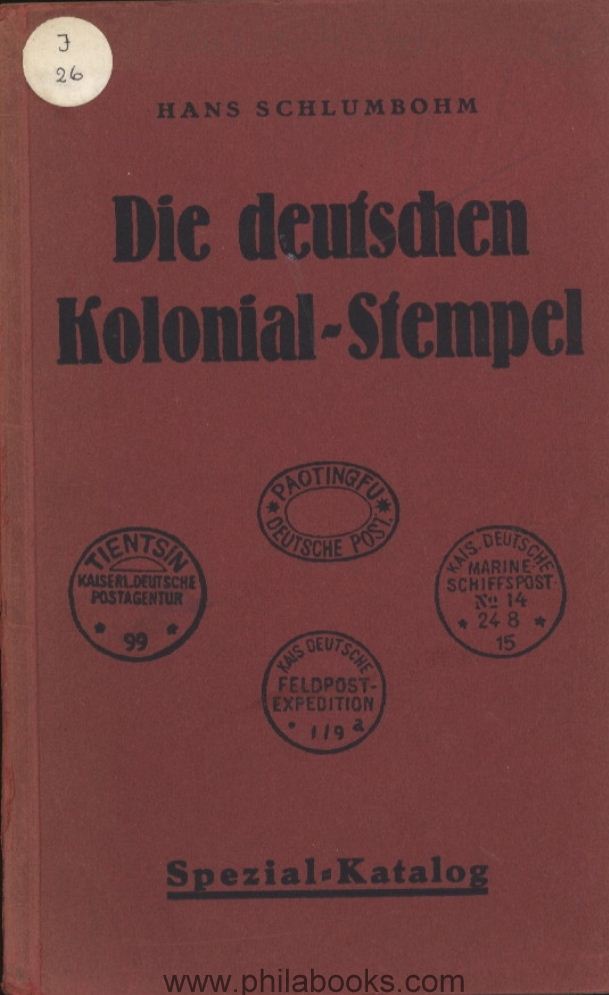 Schlumbohm, Hans, Die deutschen Kolonial-Stempel, Spezial-Katalog, 1935, 96 S., mit Schiffspost mit allen Linien, Papier gebräunt, Titelblatt um Klammerheftung herum ausgerissen, Bindung und sonst altersentsprechend gut, ex Carl Lange Hamburg (Stempel), dieses Heft ist schwer gut erhalten zu bekommen #54132