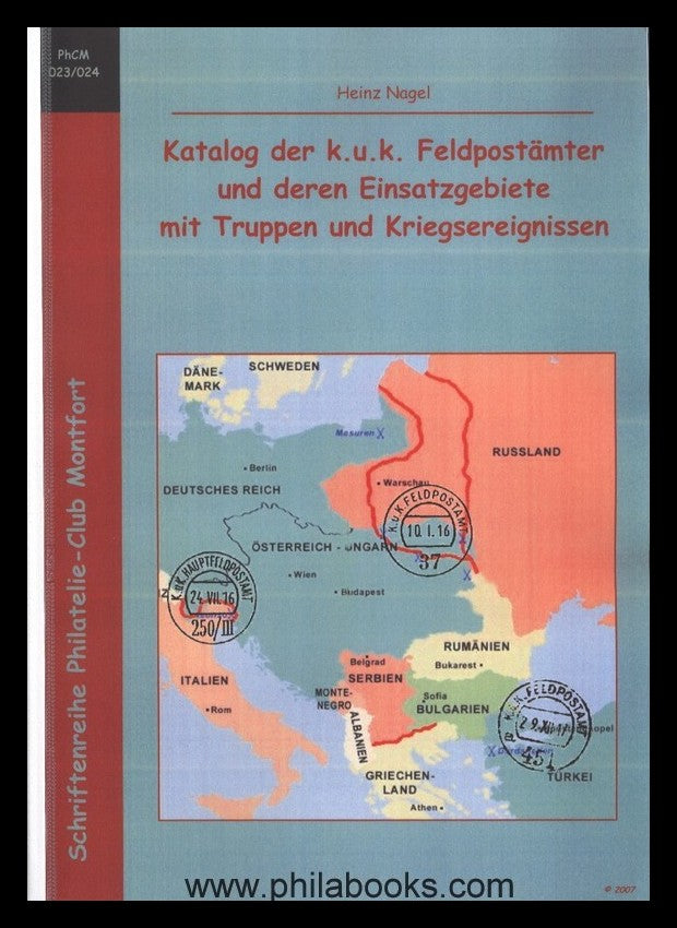 Nagel, Heinz: Katalog der k.u.k. Feldpostämter und deren Einsatzgebiete mit Truppen und Kriegsereignissen, 2007, Kat. geordnet nach Feldpostnummern mit Lokalisation, Kriegsgeschehen und Verwendungszeitraum, Bulgarien, Galizien, Rumänien, Serbien etc., 276 S., druckfrisch #54320