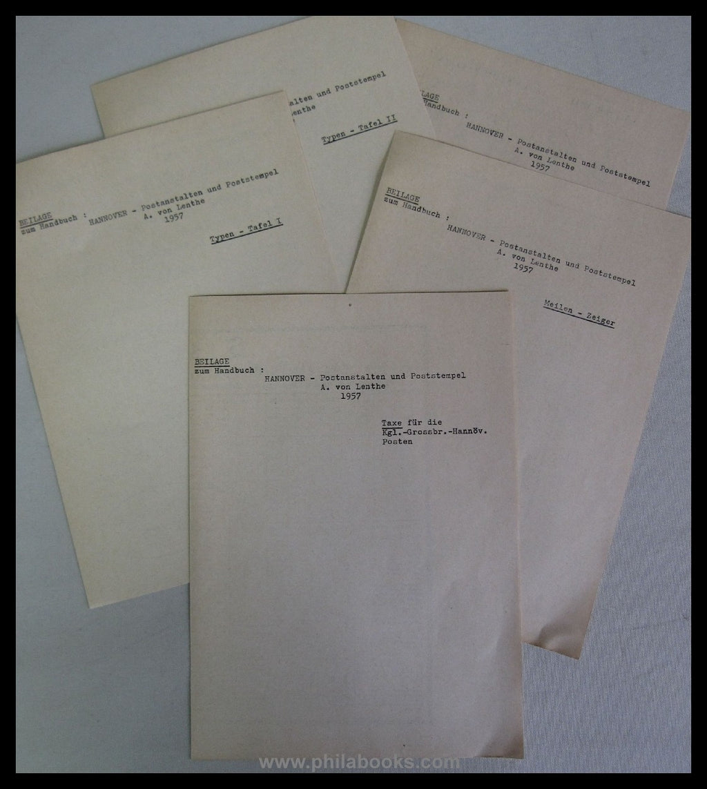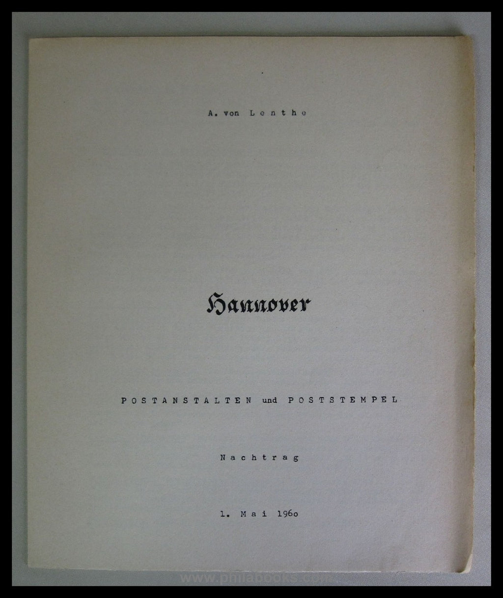 Lenthe, A. von, Hannover - Postanstalten und Poststempel, 1957, 268 S. , Stempelhandbuch ab Vorphilatelie, mit Bewertungen, Standardwerk, hier die Ganzleinen-Ausgabe, kpl. mit allen 5 Beilagen in Originalen sowie dem Nachtrag von 1960 als Original, gut erhalten #54391