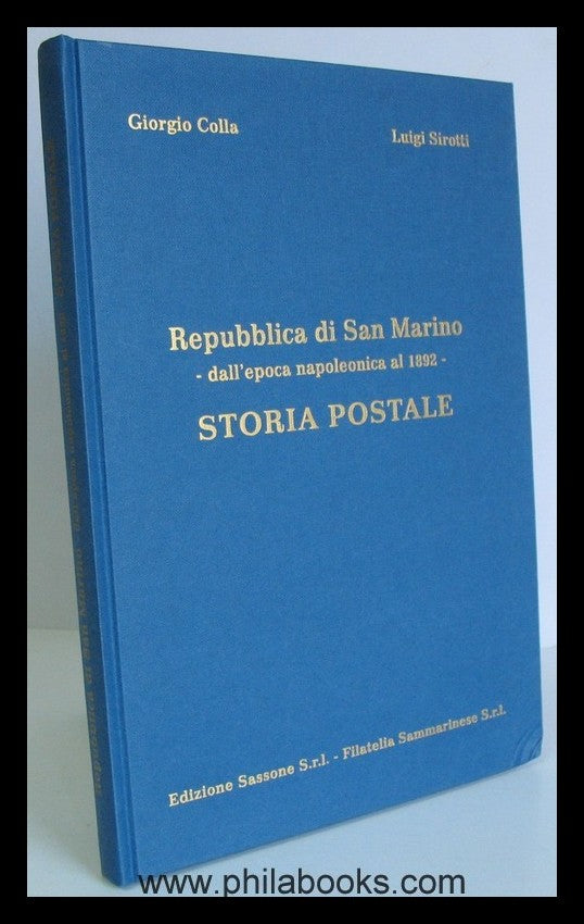 Colla/Sirotti: Repubblica di San Marino, dall'epoca napoleonica al 1892 storia postale, Edizione Sassone, 2001, 172 S., 280 meist farbigen Abb., Marken, Stempel-und Postgeschichte Hdb. San Marino ab napoleonischer Zeit mit Kartenbeigabe, Buchkanten etwas bestoßen, sonst druckfrisch #55348