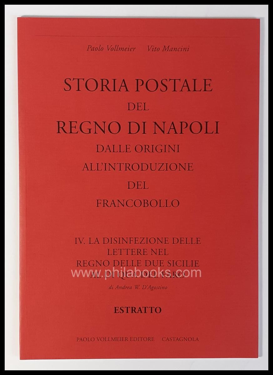 D'Agostino, Andrea W., IV. La Disinfezione delle Lettre nel Regno Delle Due Sicilie Al Di Qua del Faro, Separatdruck aus Storia Postale del Regno di Napoli dalle Origini All'Introduzione del Francobollo (Vollmeier/ Mancini et al), 1996, 39 S.,farbige Abb. #55678