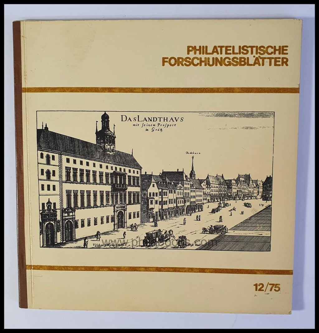 Philatelistische Forschungsblätter, (Mitgründer Kumpf-Mikuli), hier die Ausgaben Nr. 8/72, 9/72, 12/75, 13-14/76, mit ausgzeichneten Beiträgen zur Postgeschichte/ Klassik Österreich, Bosnien etc., broschiert, Umschläge bei 2 Ausgaben fleckig (1x auch die obere Papierkante), nicht häufig angeboten, soweit uns bekannt insgesamt nur bis Nr. 18 verausgabt #55804