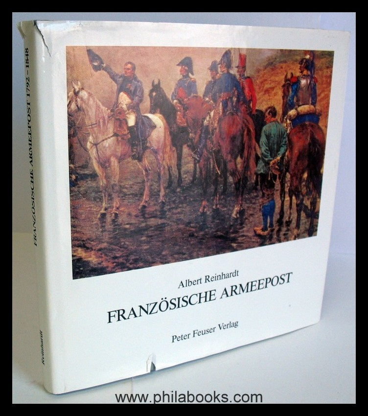 Reinhardt, A., Französische Armeepost 1792-1848, Katalog der Post- und Portofreiheitsstempel der französischen Streitkräfte während der Napoleonischen Feldzüge und der frz. Besatzungszeit in Deutschland und Europa bis 1815, Leinen, 287 S.., mit Abb. und Bewertungen der Stempel. Enthalten auch die Stempel der Grand Armée sowie die frz. Armeepost nach 1815 in Algerien, Spanien, Guadeloupe, Martinique und Reunion, gut erhalten, lediglich der Schutzumschlag leichte Randmängel. #56283