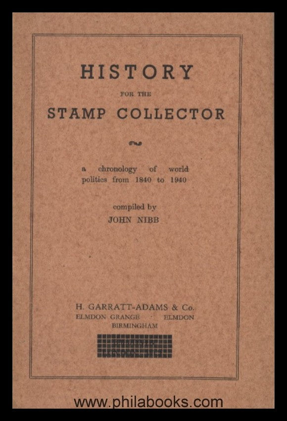 Nibb, John: History for the Stamp Collector, a chronology of world politics from 1840 to 1940, H. Garrat-Adams & Co., Birmingham, 36 S., einige Seiten fleckig, verlegt vom legendären Literatursammler Garratt-Adams #56370