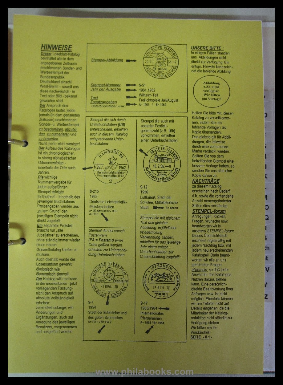 Phila Historica GmbH, Bundesrepublik Deutschland, Band 1: Sonder- und Werbestempel 1945-1964, 1999, 1. Teilieferung A-J kpl. mit Register im Original-Leitzordner, #56516