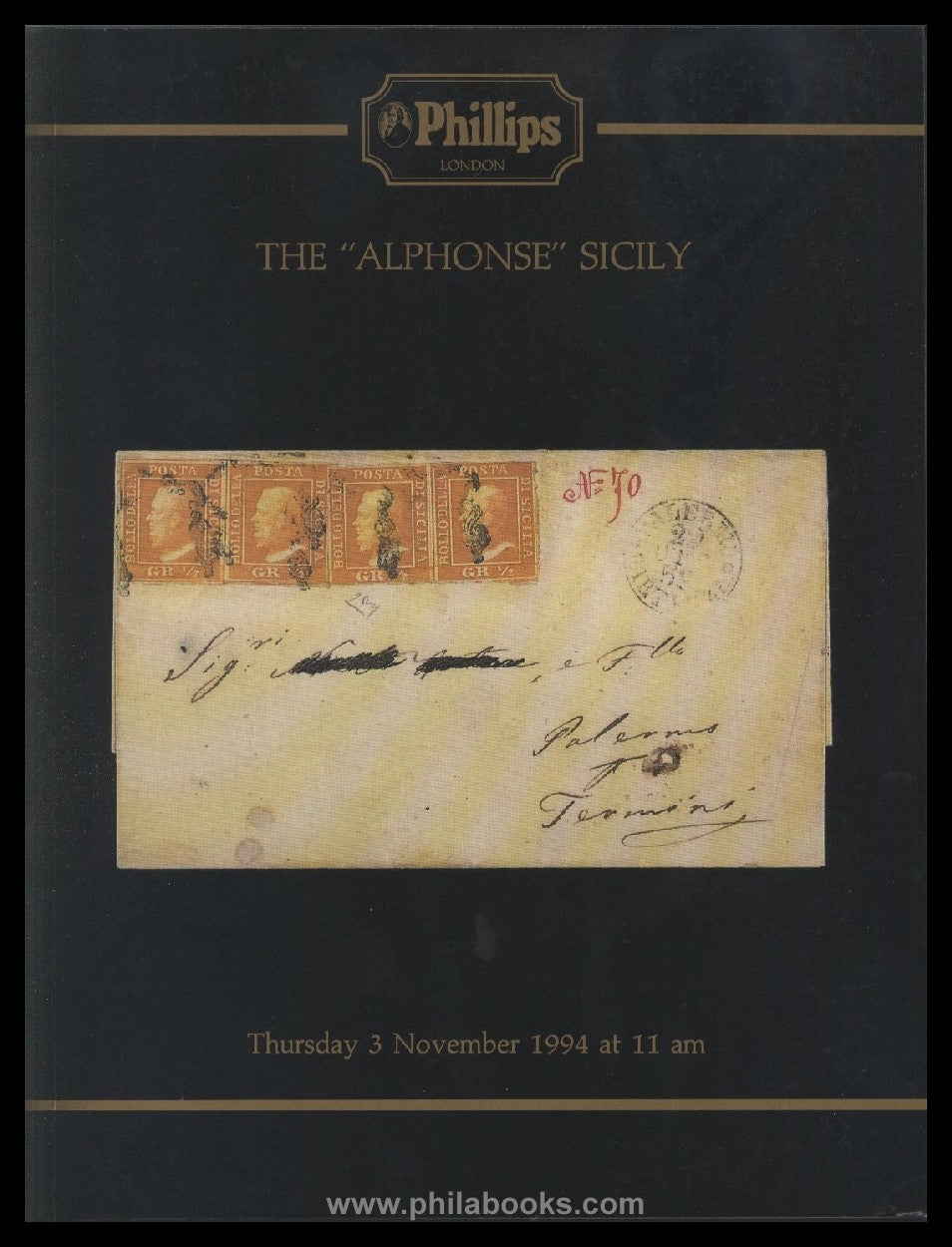 Phillips, The 'Alphonse' Sicily, London, 03.11.1994, 43 S., Katalog der ehemaligen Alphonse de Rothschild-Sammlung Sizilien, mit farbigen Abb., mit EL, 4. Teil der Sammlung, die zwischen 1986 und 1994 versteigert wurde, sehr gut erhalten #56618