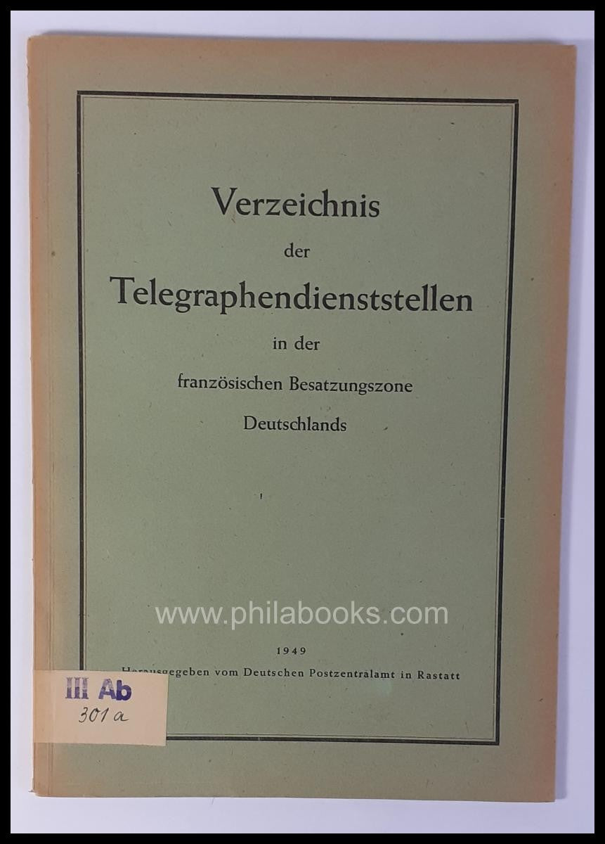 Deutsches Postzentralamt Rastatt, Verzeichnis der Telegraphendienststellen in der französischen Besatzungszone Deutschlands, 1949, Format A 4, broschiert, 51 S., Papier gebräunt, sonst gut erhalten #56716