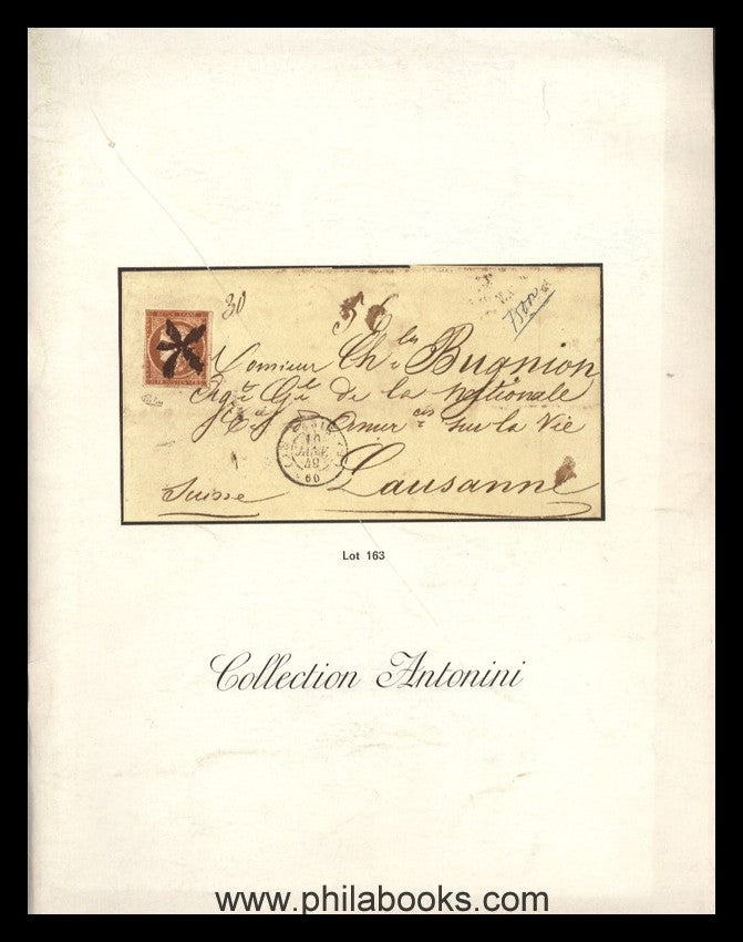Robineau & Calves, Collection Antonini, Vente aux Encheres Publiques de la collection de timbres classiques de France, 05.-06.03.1974, 67 S., viele Abb., Einband stärkere Gebrauchsspuren und Heftungsrost nicht auf das Papoier übergehend, innen gut, mit EL #57662