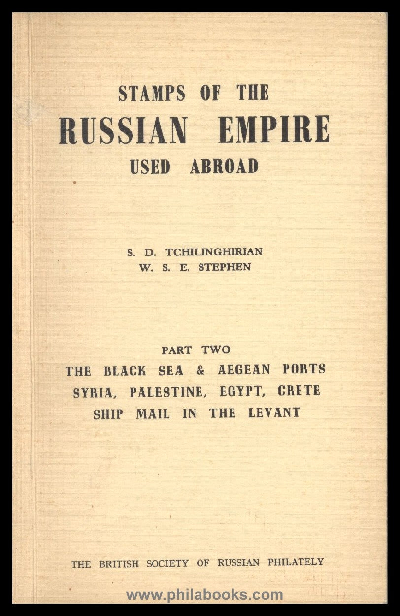 Tchilinghirian, S.D./ Stephen, W.S.E., Stamps of the Russian Empire Used Abroad, Part Two, The Black Sea & Aegean Ports, Syria, Palestine, Egypt, Crete, Ship Mail in the Levante, The British Society of Russian Philately, 1958, Kleinformat, Broschur, ca 100 S., mit Abb. und einer Faltkarte, Einband geringe Alters-und Gebrauchsspuren, sonst gut erhalten, gesuchter Teilband der 6-bändigen Reihe, kaum einmal einzeln angeboten! #58302