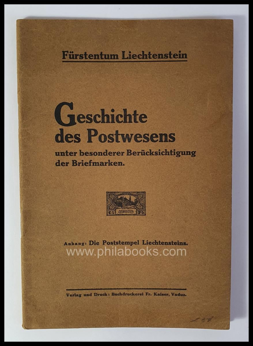 Voß, W., Fürstentum Liechtenstein, Geschichte des Postwesens unter besonderer Berücksichtigung der Briefmarken, Anhang: Die Poststempel Liechtensteins, 1929, 41 S. + VII S., mit Abb., mit einigen Textmarkierungen sowie handschriftlichen Ergänzungen, bei dem Autor handelt es sich um den Sammler Werner Voß aus Römhild/ Thüringen #58407