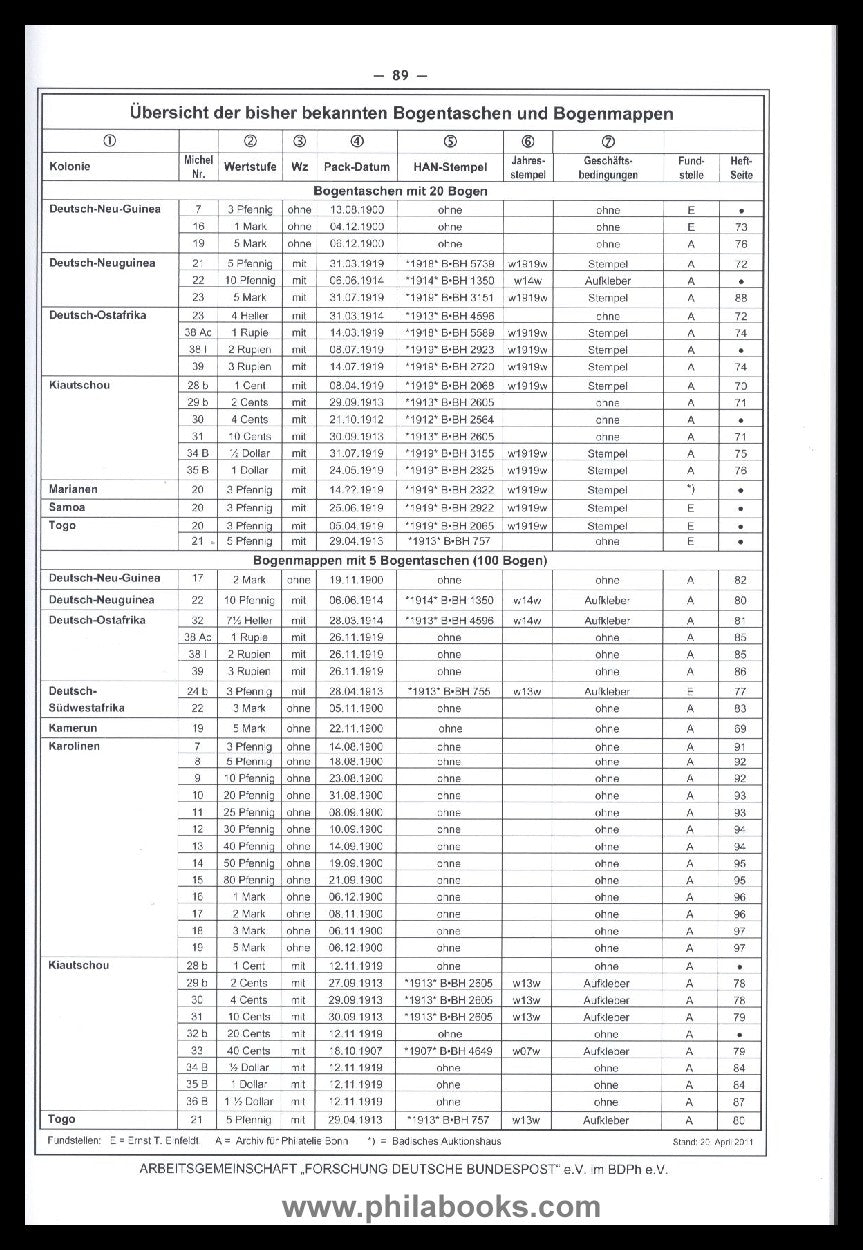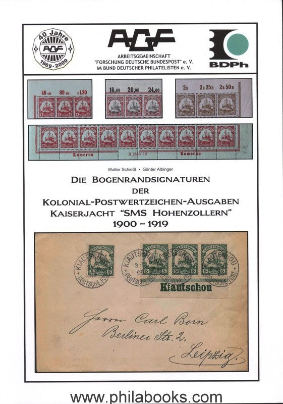 Schießl/ Albinger, Die Bogenrandsignaturen der Kolonial-Postwertzeichen-Ausgaben Kaiserjacht 'SMS Hohenzollern' 1900-1919, 2011, 115 S., mit zahlr. farbigen Abb. auf Hochglanzpapier, vergriffen und nur noch wenige Male lieferbar #59133