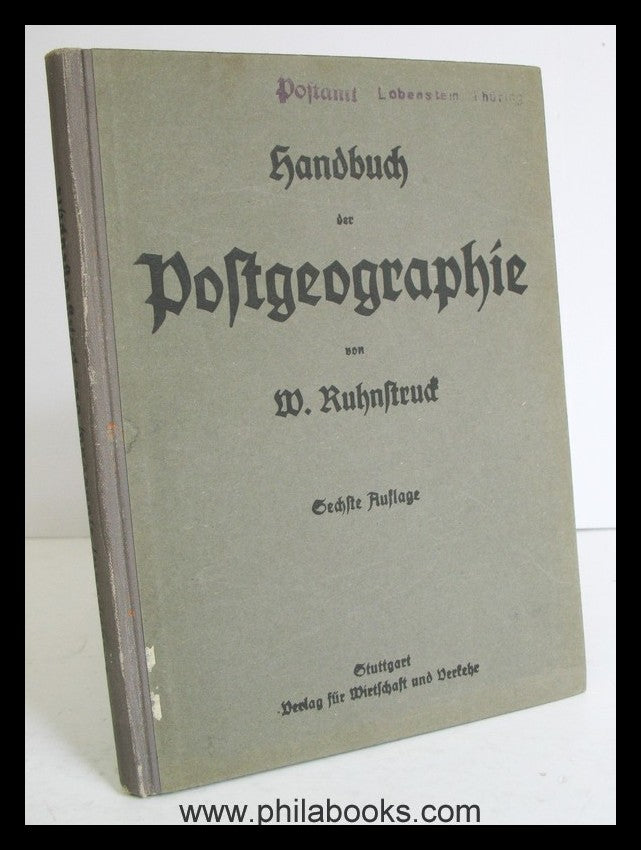 Ruhnstruck, W., Handbuch der Postgeographie, Ein Hilfsbuch zur Vorbereitung auf die Prüfungen der deutschen Post-und Telegraphenbeamten, Sechste Auflage, 1923, 240 S., darin Postverbindungen In-und Ausland, Eisenbahn,- Schiff-und Luftpostlinen unter besonderer Berücksichtigung der von Deutschland abgetretenen Gebiete, selten #59774