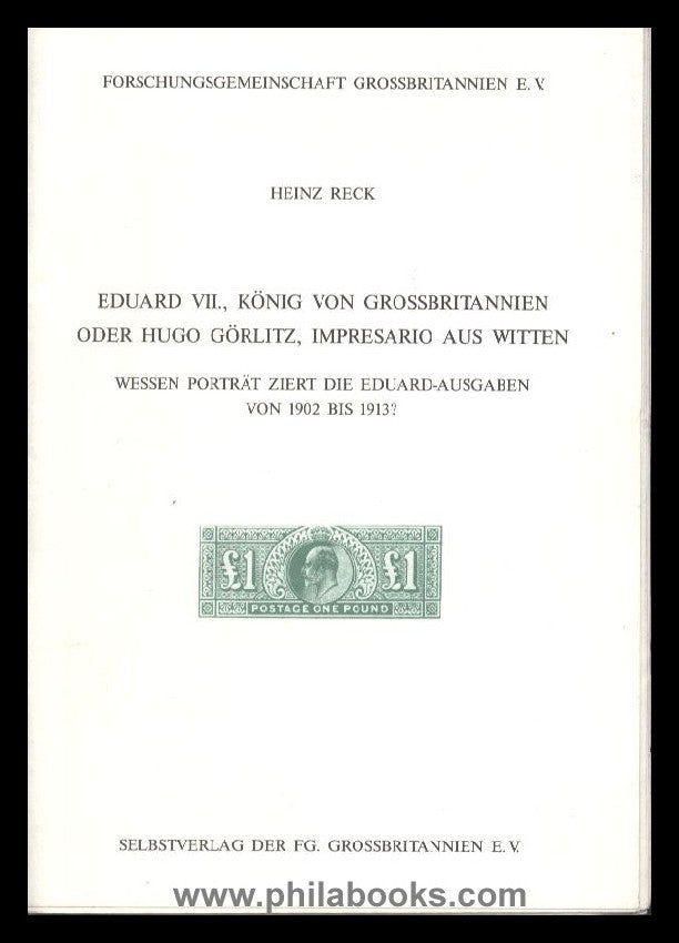 Reck, H., Eduard VII., König von Grossbritannien oder Hugo Görlitz, Impresario aus Witten, Wessen Porträt ziert die Eduard-Ausgaben von 1902 bis 1913? GorGe Grossbritannien, 1988, 74 S., mit Abb. #59802