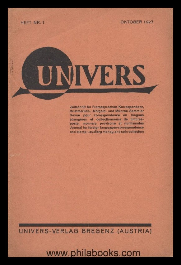 Univers, Zeitschrift für Fremdsprachen-Korrespondenz, Briefmarken-, Notgeld und Münzen-Sammler, Bregenz (Austria), Heft Nr. 1, Oktober 1927, Nr. 3, Dezember 1927 und Nummer 1 und 2 von 1928 #60333