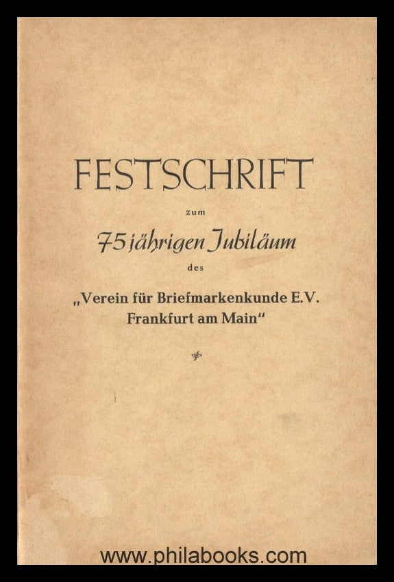 FRANKFURT AM MAIN: Festschrift zum 75jährigen Jubiläum des 'Vereins für Briefmarkenkunde e.V. Frankfurt am Main', 1953, 94 S., mit einigen Abb., darin die Beiträge 'Briefe zu der Frankfurter Franzosenzeit' von Dr. A. Mayer, 'Die vorphilatelistischen Stempel von Frankfurt' von H. Deninger, mehrere Beiträge zu Thurn-und Taxis, ex Röhm #62984