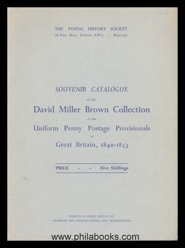 Ray, L., Souvenir Catalogue of the David Miller Brown Collection of the Uniform Penny Postage Provisionals of Great Britain, 1840-1853, The Postal History Society, London, 1948, 32 S., mit Abb. #63556