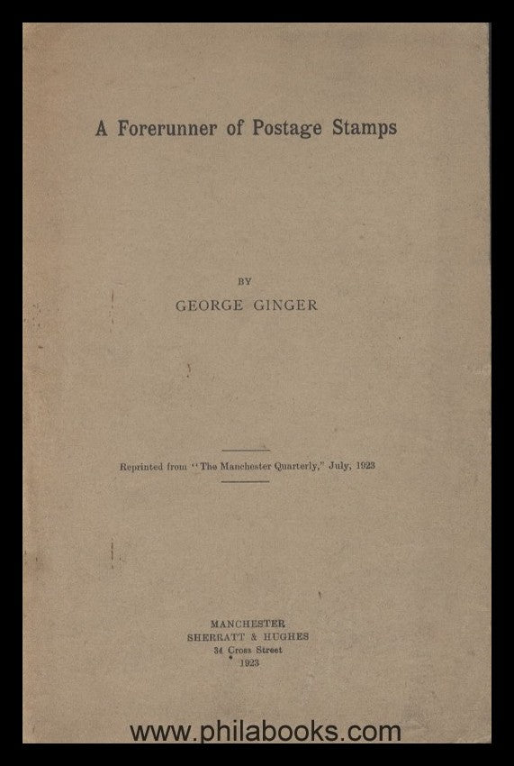Ginger, G., A Forerunner of Postage Stamps, Reprinted from 'The Manchester Quarterly', July 1923, 3 S., mit Widmung des Autors #63560