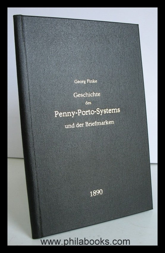 Finke, G., Geschichte des Penny-Porto-Systems und der Briefmarken, Mit einem Anhange über die Erfindung der Postkarte, Zum 50jährigen Jubiläum der Briefmarke, Mit einem Porträt J. Chalmers, dessen Briefmarken-Entwürfen und einem Postwertzeichen-Entwurfe Charles Whitings, Ernst Heitmann, Leipzig, 1890, 49 S., mit einem ausfaltbaren Reprint des Whitings-Entwurfes aus dem Besitz von E. Huxhagen, Braunschweig, dazu ein Beitrag von Franz Himmelbauer, Streitschrift um die Erfindung der Briefmarke aus der deutschen Fraktion für den Schotten Chalmers aus dem Umfeld des österreichischen k.u.k. Offiziers Karl von Gündel, sehr seltenes Werk, erstes bei uns registriertes Exemplar, leichte Gebrauchsspuren, vorzüglich neu gebunden #63561