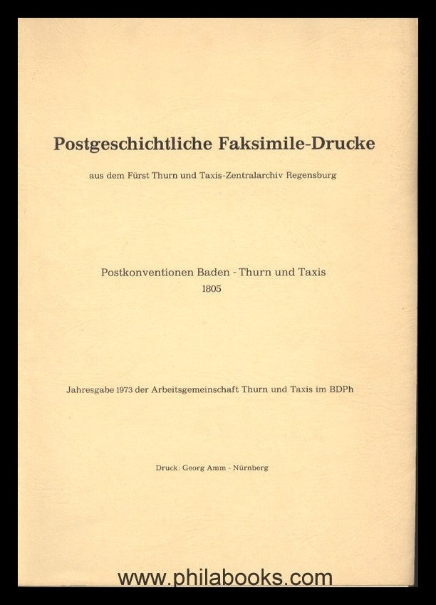 Postkonventionen Baden - Thurn und Taxis, Erneuerter und erweiterter Post-Vertrag zwischen dem Kurfürstlichen Haus Baden und dem Hochfürstlichen Haus Thurn und Taxis vom Jahr 1805, Postgeschichtliche Faksimile-Drucke aus dem Fürst Thurn und Taxis-Zentralarchiv Regensburg, Jahresabgabe 1973 der ArGe Thurn und Taxis im BDPh, ca 40 S., nicht häufig angeboten #64438