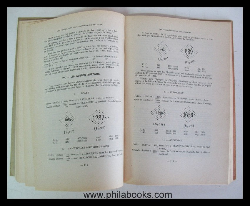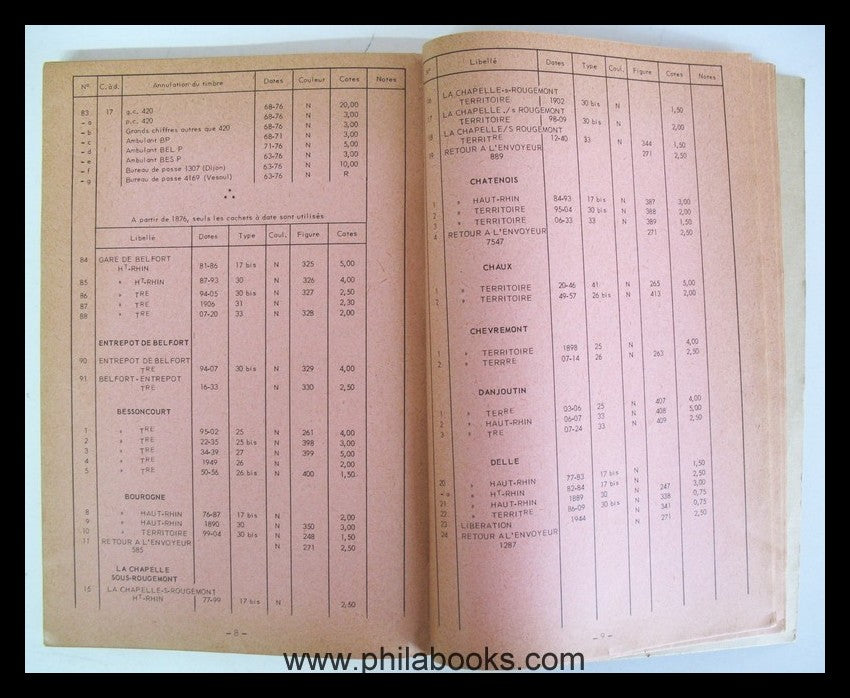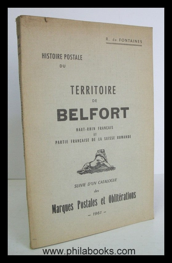 de Fontaines, R., Histoire Postale du Territoire de Belfort, Haut-Rhin Francais et Partie Francaise de la Suisse Romande, Suvie d'un Catalogue des Marques Postales et Oblitérations, 1961, Postgeschichte-und Stempelhandbuch, Ex. 245/450, 259 S. mit 30 S. Bewertungsanhang, broschiert, fundiertes Handbuch mit zahlr. Abb. und Karten #65073