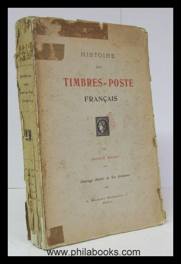 Maury, A., Histoire des Timbres-Poste Francais, Enveloppes, Bandes, Cates, Timbres-Télgraphe et Téléphone, Essais, Marques Postales et Oblitérations, 1907, Band 1, (Band 2 erschien erst 1908), 392 S., mit Abb., dieser Band behandelt die Ausgaben bis 1885, sehr gutes Handbuch mit vielen interess. Abbildungen, selten, Umschlag Mängel, Bindung gelockert, trotz der Mängel lohnenswert, da inhaltlich sehr gut und Neubindung preislich bérücksichtigt. Crawford 258/1180 #65210