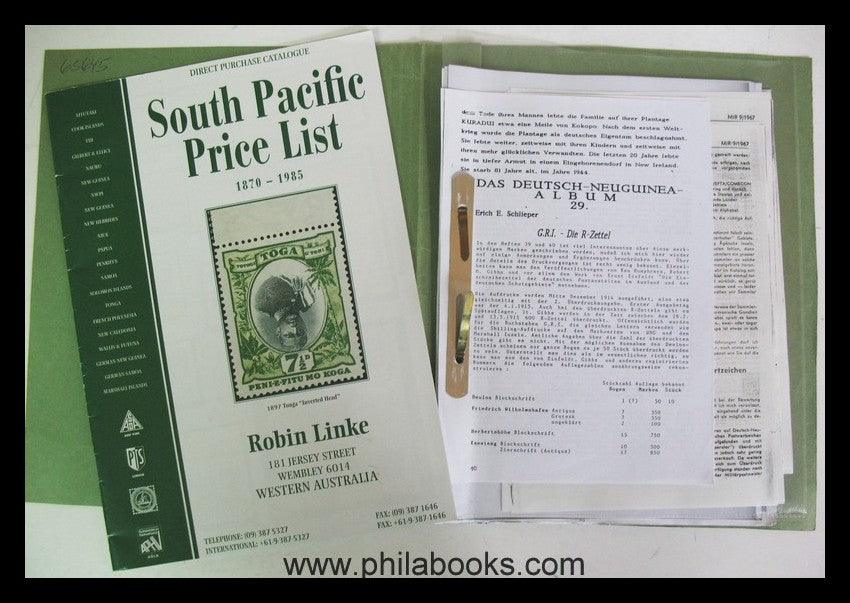 GRI-Aufdrucke, kleiner Ordner mit Sammlerunterlagen, teils Kopien von Beiträgen von Hofmann-Giesecke etc., sowie eine australische Preisliste mit einem GRI-Angebot #65645