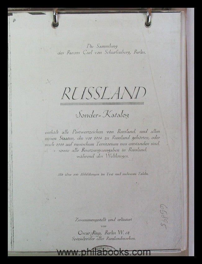 Riep, O., Die Sammlung des Barons Carl von Scharfenberg, Berlin, hier als einfache, alte aber gut lesbare KOPIE im Ringbuch, 224 S., mit Abb., Original sehr selten #65895