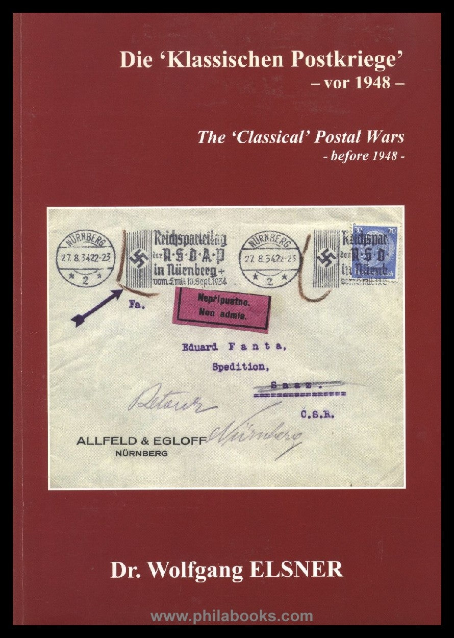 Elsner, Dr. W., Die 'klassischen Postkriege'-vor 1948- / The 'Classical' Postal Wars - before 1948. 2011, 100 S., mit zahlr. farbigen Belegabb., Kunstdruckpapier, 2-sprachig dt. und engl., nur im Eigenverlag erschienen, druckfrisch, darin u.a. Kapitel über das Drittes Reich und die Tschechoslowakei, Ungarn, Polen, China, Mongolei, Mexico, II. Weltkrieg, die Falkland-Inseln etc., kpl. mit dem Ergänzungsblatt zu Manchukuo #66006