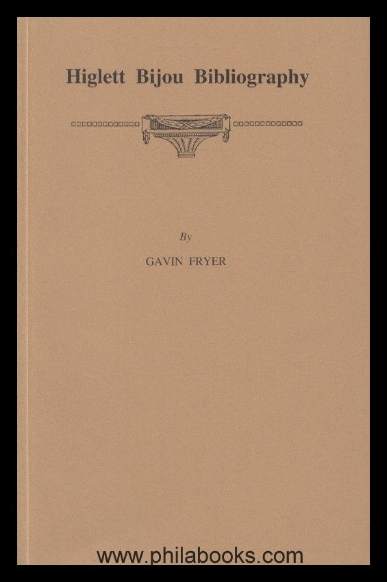 Fryer, G., Higlett Bijou Bibliography, 1997, Bibliographie der Schriften des bekannten englischen Philatelisten (RDP 1925), 89 S. #66524