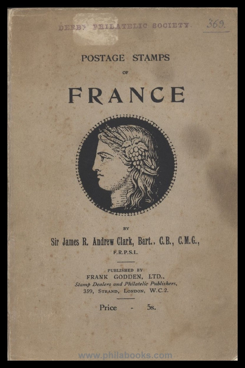 Clark, Sir J. R. A., F.R.S.P.L., Postage Stamps of France, Frank Godden, London, 1922, 84 S., 4 Bildtafeln, vordere Umschlagseite lose #66552
