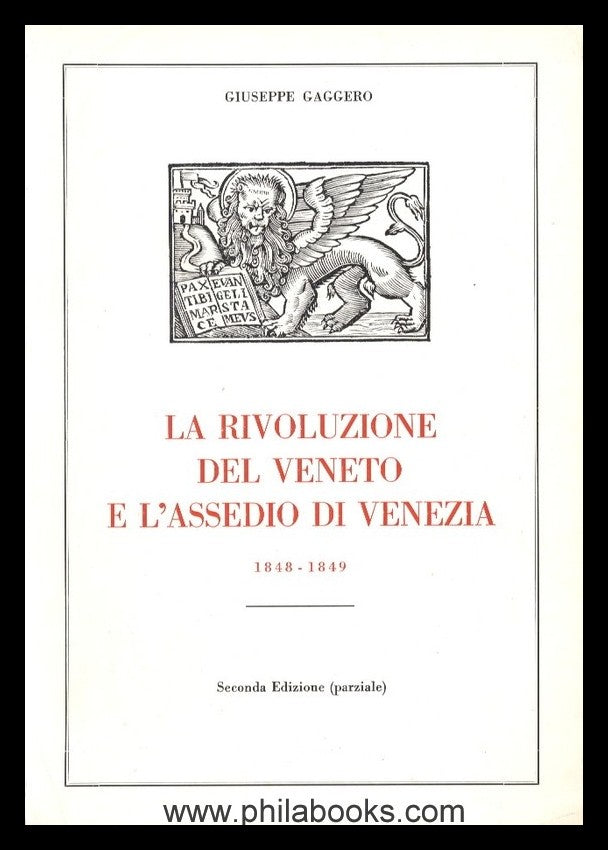 Gaggero, G., La Rivoluzione del Veneto e l'Assedio di Venezia 1848-49, Seconda Edizione (parziale), 1973, 141 S., mit Abb. #66893