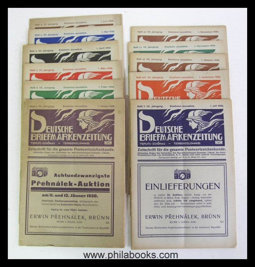 Deutsche Briefmarkenzeitung, Teplitz-Schönau, Tschechoslowakei, hier die ersten beiden Jahrgänge 1928 und 1929 der deutschsprachigen, sudetendeutschen Philateliezeitschrift, zeitgenössisch in Halbleinen gebunden, mit Buchecken, Papier unvermeidlich gebräunt, ansonsten gut bis sehr gut erhalten, beiliegend auch noch der 3. Jahrgang, 1930 vollständig, ungebunden. Nicht #66916