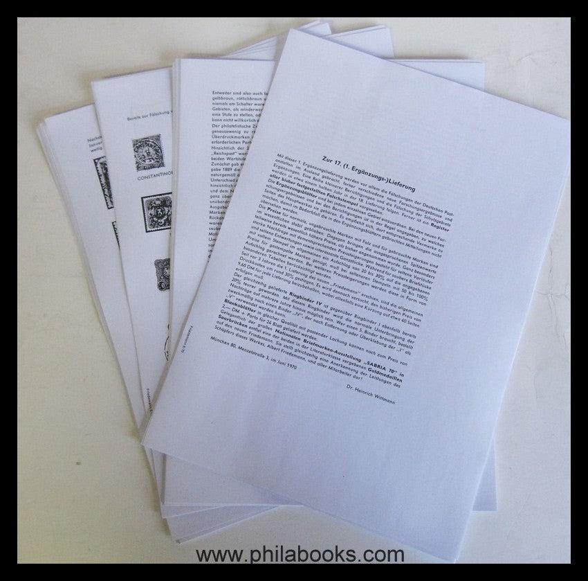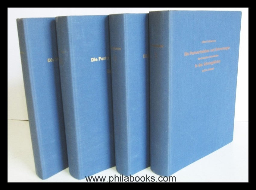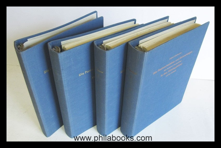 Friedemann, A., Die Postwertzeichen und Entwertungen der deutschen Postanstalten in den Schutzgebieten und im Ausland, 1967, 3. Aufl., bearbeitet von Dr. H. Wittmann kpl. mit der 17ten und letzte Lieferung in 5 blauen Ringbindern (Band I hier auf 2 Ordner verteilt), die Rücken etwas ausgebleicht, sonst gut erhalten. #67160