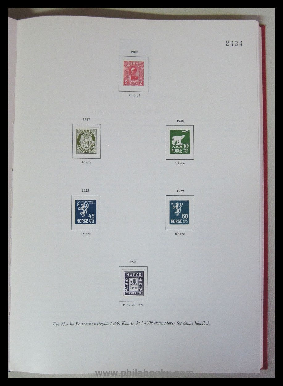 Norsk Filatelistforbund (Hrsg.), Handbok over Norske Filatelistika, 1969, Norwegen-Handbuch, Briefmarken, Ganzsachen, Stempel, Postgeschichte, Lokalpost, 312 S., mit Abb., kpl. mit allen oftmals entnommenen 6 Reprints in sehr guter Erhaltung #67606