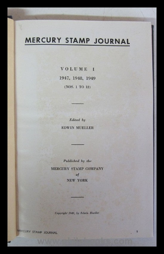 Mercury Stamp Journal, edited by Edwin Mueller, hier Band I mit den Ausgaben 1-12 von 1947-1949 komplett im blauem Originaleinband mit Inhaltsverzeichnis gebunden, gut, fast sehr gut erhalten, sehr gute Zeitschrift des bekannten österreichischen 'Jahrhundertphilatelisten', seit 1938 in New York ansässig. #67774